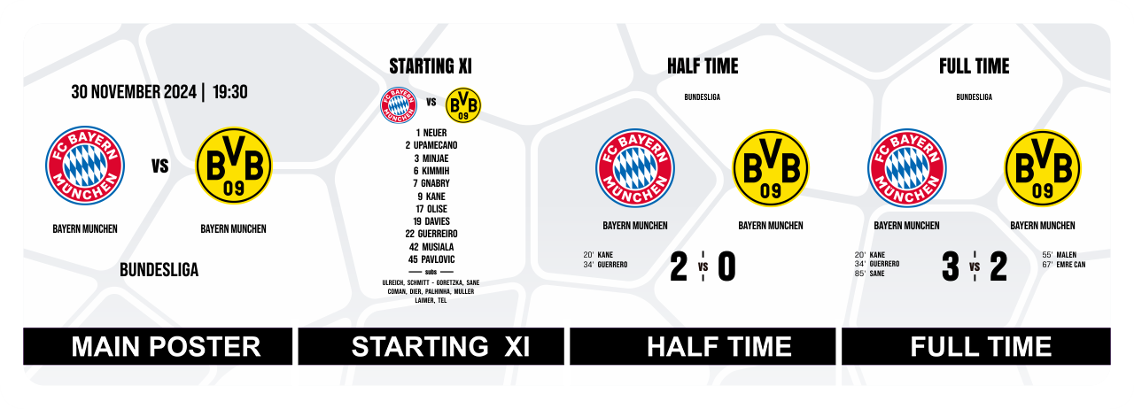 Main Poster /Starting XI /Line Up /Half Time /Full Time